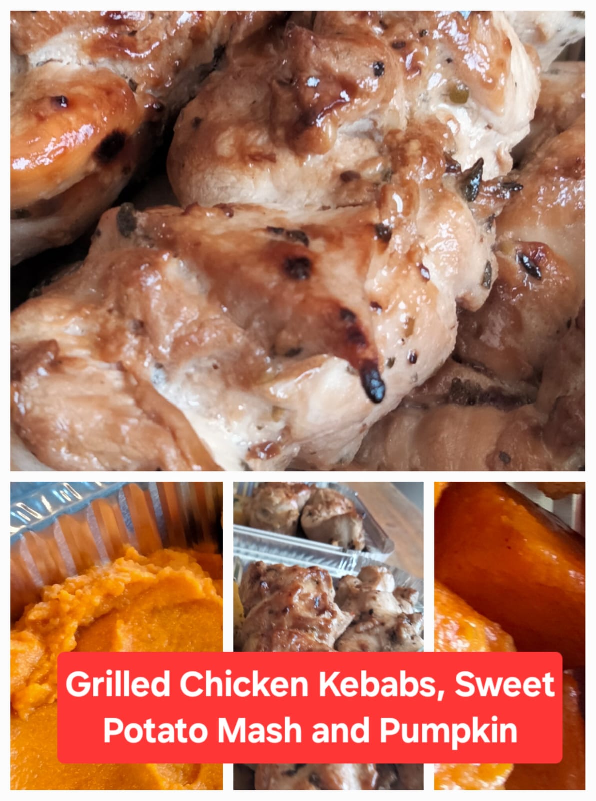 Pre-heat oven to 180°C, remove clear plastic dome lid, cover chicken kebabs loosely with foil, not the potatoes and carrots. Place in oven for 30 minutes, remove foil for the last 10 minutes of cooking. Ensure the product is piping hot throughout.